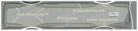 The polished cross-section of interphases formed between the co-bonded ABS and UPR systems at various processing conditions were analysed by using a Keyence VHX-5000 digital microscope (Keyence, Osaka, Japan) equipped with a VH-100UR lens. 2D stitching function of the microscope software was used to joint several captured images to obtain a sufficiently large cross-section of the interface. The interphase thickness values were reported for each temperature as the average measurements at mid-section of the interface far from the clamps and obtained from at least three specimens for each temperature.