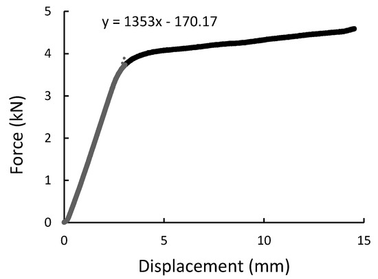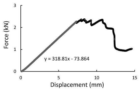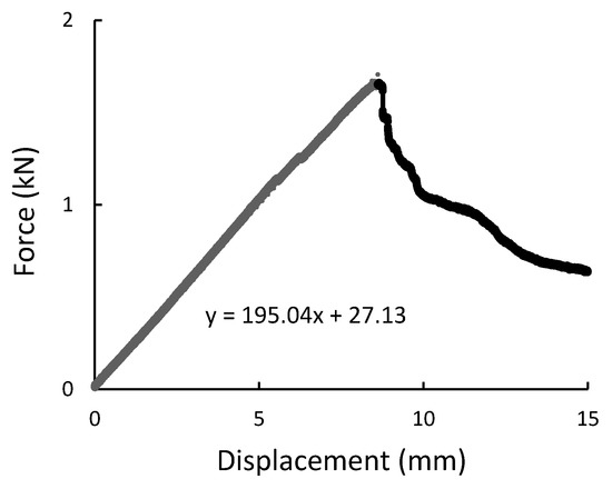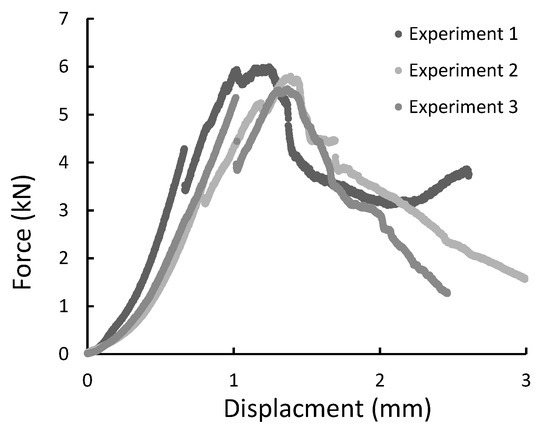 The force-displacement graph for composite specimens of 30 mm length registered during the diametral compression test.
