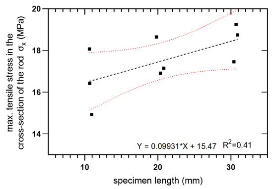 The transverse tensile strength against specimen length is plotted in Figure 17 using linear regression and a 95% confidence level.