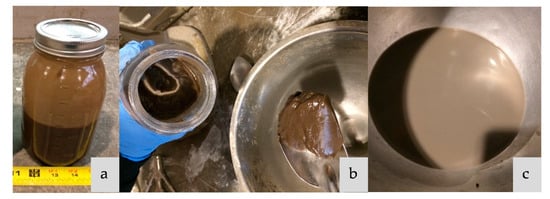 Ash treatment process (this process was used for SF-T, RSA-T, and RHA-T); (a) ash being soaked in NaOH; (b) ash after 24 h soaking; (c) dispersed treated ash in the activator solution.