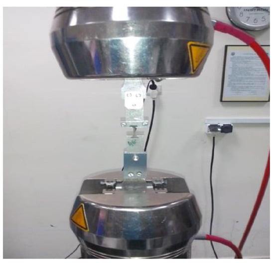 A static tensile test, considered a destructive test, was carried out with the Instron 8501 Plus universal testing machine in accordance with the PN-EN ISO 6892–1:2010 standard. Due to the non-standardized, small dimensions of the strength specimens obtained (Figure 7), in order to execute the static tensile test, it was necessary to design and manufacture special holders to give the test a proper performance (Figure 9).