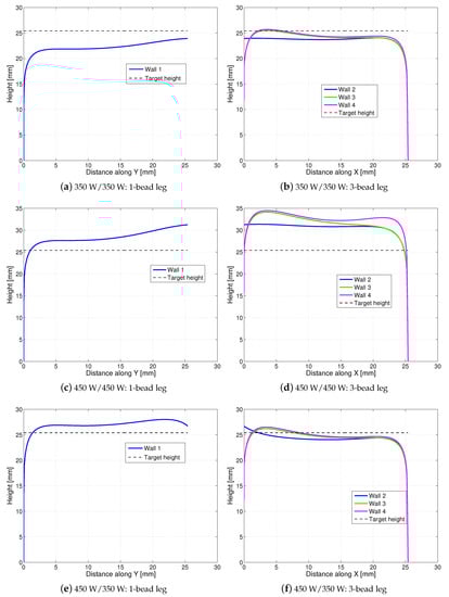 | Laser-Power Applied | Height of 1-Bead Leg | Height of 3-Bead Leg |