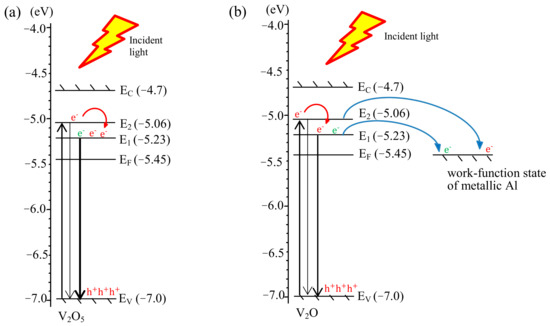 - Wu, Q.H.; Thissen, A.; Jaegermann, W.; Liu, M. Photoelectron spectroscopy study of oxygen vacancy on vanadium oxides surface. Appl. Surf. Sci. 2004, 236, 473–478. [Google Scholar] [CrossRef]