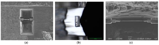 Before the sample was examined on TEM, a multistep process using a JIB-4000PLUS (Jeol) focused ion beam (FIB) system was used to prepare a thin-film of the coated specimens as shown in Figure 2. This process has the advantage of examining the ZrB2-SiC coated thin-film in TEM. The images illustrate that the block samples were mechanically cut with FIB, sample block pickup, and thinning process.