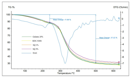 - Barreto, P.L.M.; Pires, A.T.N.; Soldi, V. Thermal degradation of edible films based on milk proteins and gelatin in inert atmosphere. Polym. Degrad. Stabil. 2003, 79, 147–152. [Google Scholar] [CrossRef]
