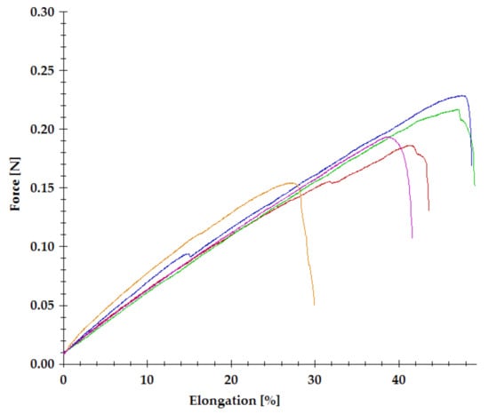 | Sample | Tensile Strength [kPa] | Elongation [%] | Young’s Modulus [kPa] |