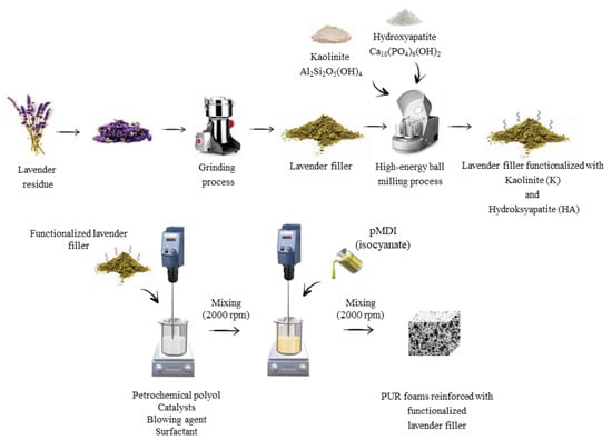 Członka, S.; Kairytė, A.; Miedzińska, K.; Strąkowska, A. Polyurethane Hybrid Composites Reinforced with Lavender Residue Functionalized with Kaolinite and Hydroxyapatite. Materials 2021, 14, 415. https://doi.org/10.3390/ma14020415