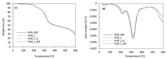 - Mizera, K.; Ryszkowska, J.; Kurańska, M.; Prociak, A. The effect of rapeseed oil-based polyols on the thermal and mechanical properties of ureaurethane elastomers. Polym. Bull. 2020, 77, 823–846. [Google Scholar] [CrossRef]