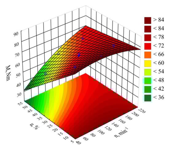 The empirical model for the screw drive torque M determined as a function of variables n, u is shown through a polynomial (Equation (3)):