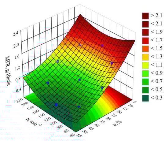 - Determining the melt flow rate (MFR) (150 °C/2.16 kg) in g/10 min. The measurement was taken using a MeltFlow TQ6841 extrusion plastometer by CEAST (Turin, Italy), based on the recommendations of ISO 1133-1:2011, method A [].