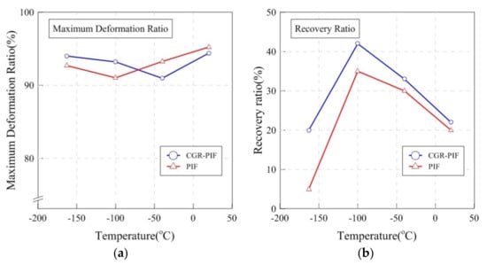 (a) Maximum deformation ratio and (b) recovery ratio for PIF and CGR-PIF.