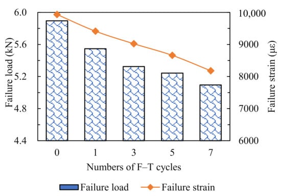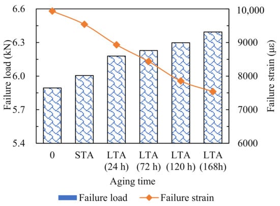 - The failure loads and failure strains of the asphalt mixture decreased as the number of F–T cycles increased; with the increase in aging time, the failure loads of asphalt mixture increased, while the failure strains decreased.