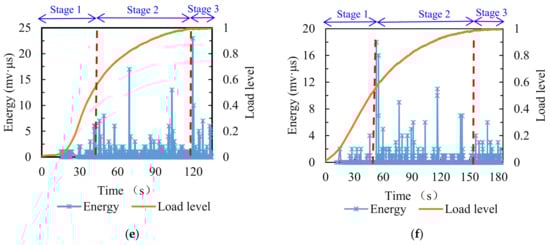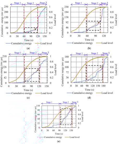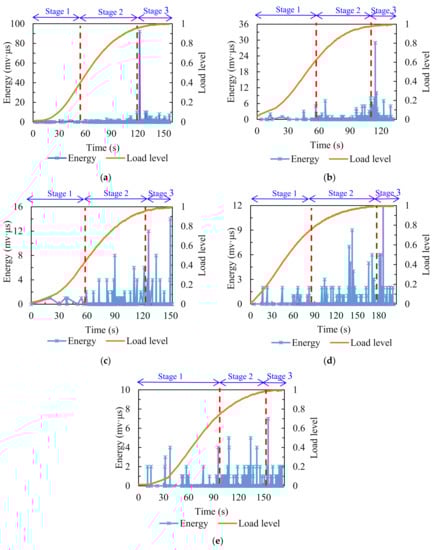 - Meng, Q.; Zhang, M.; Han, L.; Pu, H.; Nie, T. Effects of Acoustic Emission and Energy Evolution of Rock Specimens Under the Uniaxial Cyclic Loading and Unloading Compression. Rock Mech. Rock Eng 2016, 49, 3873–3886. [Google Scholar] [CrossRef]