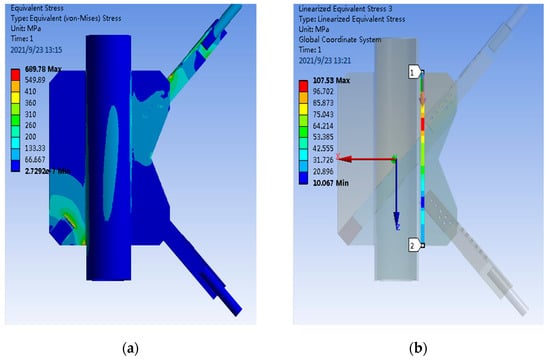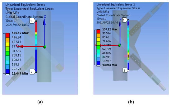 It can be seen from Figure 9, according to the path equivalent stress diagram on the gusset plate of PSLSPJ, the maximum stress is shown in the following Equation (16).