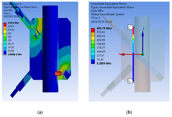 According to the stress distribution obtained by finite element calculation, as shown in Figure 16, it can be concluded that: