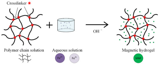 Schematic representation of the in situ co-precipitation method used to prepare a magnetic hydrogel.