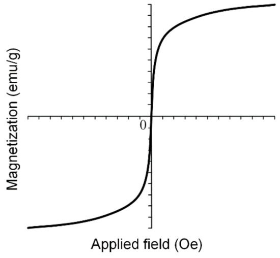 SPIONs are very important in medical applications such as magnetic drug targeting, MRI and different cancer treatments due to the fact that when the external magnetic field is removed, SPIONs do not exhibit any magnetic properties and the aggregate formation is prevented. Superparamagnetic nanoparticles present a strong response to external fields, and so they provide a high control of the medical application. In Figure 11, an example of a magnetization curve for iron-based nanoparticles in a superparamagnetic state is shown.