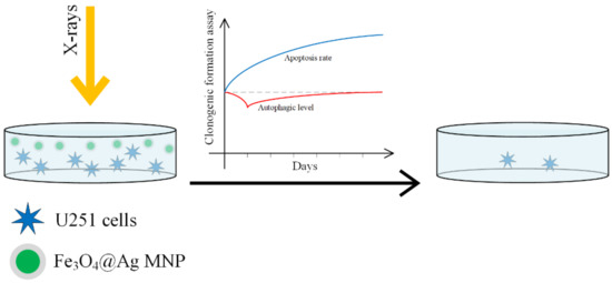 - Wu, H.; Lin, J.; Liu, P.; Huang, Z.; Zhao, P.; Jin, H.; Wang, C.; Wen, L.; Gu, N. Is the autophagy a friend or foe in the silver nanoparticles associated radiotherapy for glioma? Biomaterials 2015, 62, 47–57. [Google Scholar] [CrossRef]