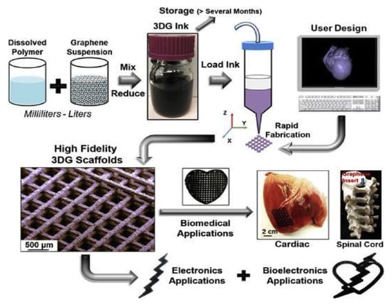 Production of a 3D printable graphene composite scaffold for biomedical application [78]. Copyright 2015, American Chemical Society.