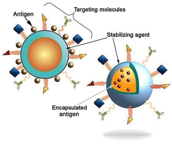 Schematic depiction of antigen delivery through nanocarriers with surface modification to enhance efficacy of vaccine against specific diseases [207]. Copyright © 2021 Pati, Shevtsov and Sonawane. This is an open-access article distributed under the terms of the Creative Commons Attribution License (CC BY).