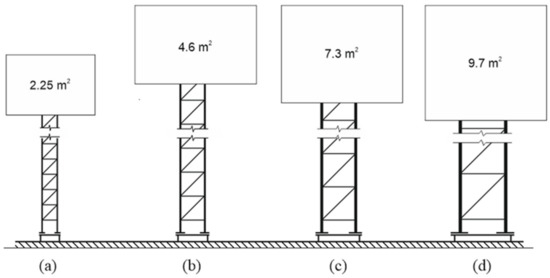 Characteristic dimensions variable for individual product family members were: diameter of main bars, of lattice bars and span of bars (Table 3). With the increase of the diameter of main bars from 16 to 30 mm, their span increased from 200 to 450 mm, resulting in the increase of the masts’ load-bearing value. It allowed the assembly of the signs of a bigger surface from 2.2 m2 for mast T00 to 9.7 m2 for mast T03.