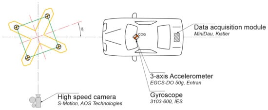 During the test, the image was recorded with the use of a fast camera (S-Motion, AOS Technologies, Baden Dättwil, Switzerland), triple-axial gyroscope (3103-600, IES Elektronikentwicklung, Braunschwieg, Germany) and triple-axial accelerometer (EGCS-DO 50 g, Entran Devices, Fairfield, NJ, USA). The data measured with the gyroscope and accelerometer were recorded by the data recording module (MiniDau, Kistler, Prague, Czech Republic) and then transferred via wireless network to the PC for processing with the developed calculation software, determining the values of parameters of injury intensity ASI and THIV.