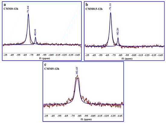 29Si NMR spectra of (a) CMM0, (b) CMM0.5 and (c) CMM5 samples autoclaved for 12 h.
