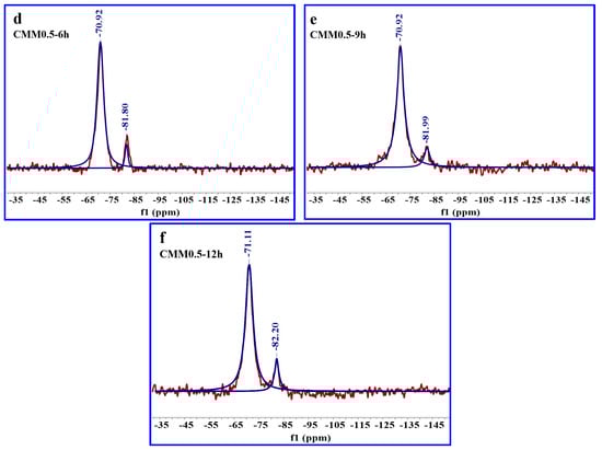 29Si NMR spectra of CMM0.5 autoclaved for (d) 6, (e) 9 and (f) 12 h.