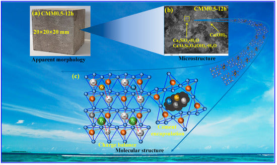 The consolidation mechanism of heavy metals of the CMM0.5–12 h ((a): Apparent; (b): Microstructure; (c): Molecular).
