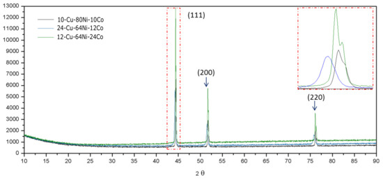 APA StyleMarín Castaño, E. P., Campos, J. B. d., Solórzano-Naranjo, I. G., & Brocchi, E. d. A. (2021). Characterization of Ternary CuNiCo Metallic Nanoparticles Produced by Hydrogen Reduction. Materials, 14(20), 6006. https://doi.org/10.3390/ma14206006