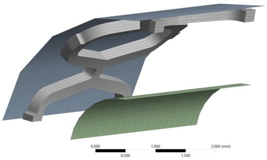 A solid 3D hexahedral finite element mesh was created for the stent (20 node hexahedral elements), while a shell mesh was used for the crimper and balloon (4 node structural shell). A mesh convergence analysis was performed. The properties of the finite element mesh are summarised in Table 3, and the resulting mesh is shown in Figure 3. The contact area of the crimper usually consists of 8–16 planar surfaces. A coarse mesh on a circular geometry is designed to replicate the crimper, generating 4 elements per 90°, as shown in Figure 3.