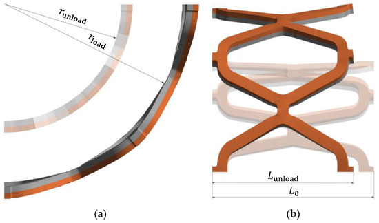where is the length of the stent once the balloon is removed, and is the initial length of the stent before inflating the balloon. The dimensions can be seen in Figure 5b. Stent foreshortening can cause damage on the arterial walls during deployment, contributing to neointimal hyperplasia. Therefore, minimal foreshortening is desired.