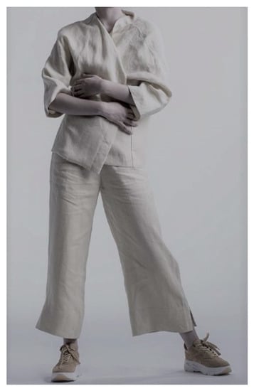 Results of hemp fabric parameters tests like hygroscopicity, ability to water sorption, air permeability, thermal and water vapor resistance indicated, that clothing made of this fabric will guarantee the comfort of wearing in the condition of everyday life. Additionally, the value of ultraviolet protection factor (UPF) means, that the hemp clothing will protect the user against UV radiation [34]. On the other side, mechanical parameters indicated good resistance to breakage and abrasion, which allowed predicting a long time of clothing use. The ability to use the clothing for a long time results as a consequence in limitation of creation of waste and is one of the tools of waste management necessary for environment protection. Value of bedding stiffness and angle recovery indicated the tendency of the fabric to crease, these features are typical for bast fiber woven materials.