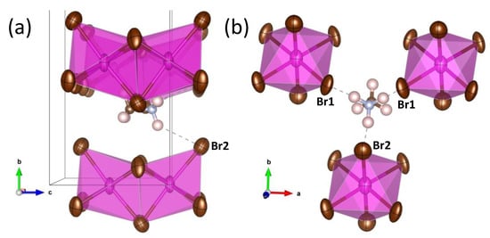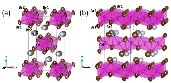 - Ben Hassen, R.; Ben Salah, A.; Kallel, A.; Daoud, A.; Jaud, J. Crystal structure of monomethylammonium tribromocadmate(II). J. Chem. Crystallogr. 2002, 32, 427–430. [Google Scholar] [CrossRef]