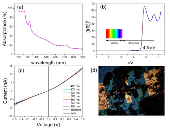 3.3. Optical Gap by UV-Vis Spectra and Photocurrent Properties