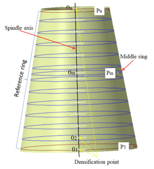 Step 2. The slicing ring is formed by the intersection of the mold surface and the normal plane generated by points and perpendicular to the spindle axis;