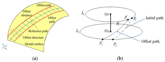 Concept for offsetting the initial path. (a) Equidistant offset [7], (b) Offset proportionally based on profile perimeter.