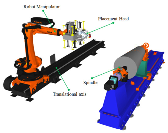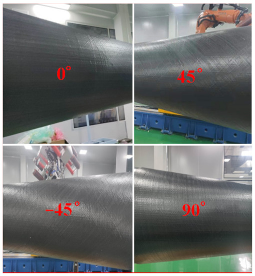 Fiber reinforcement composites have been widely used in aerospace and other high-tech fields due to their light weight, high strength, high modulus, fatigue resistance, corrosion resistance, strong designability, and simplicity to realize automatically integrated manufacturing [1]. Automatic fiber placement (AFP) is one of the most important technologies for manufacturing carbon fiber reinforced plastic (CFRP) components, which can realize the manufacturing of large-size and complex composite structural parts because each slit-tape is driven individually [2,3,4]. Moreover, it is the development direction of low-cost manufacturing technology of composite materials.