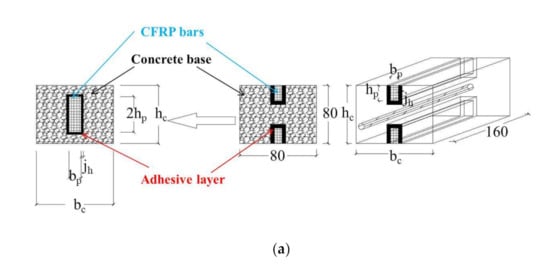 | bc | width of concrete test blocks | bp | width of CFRP bars cross section |