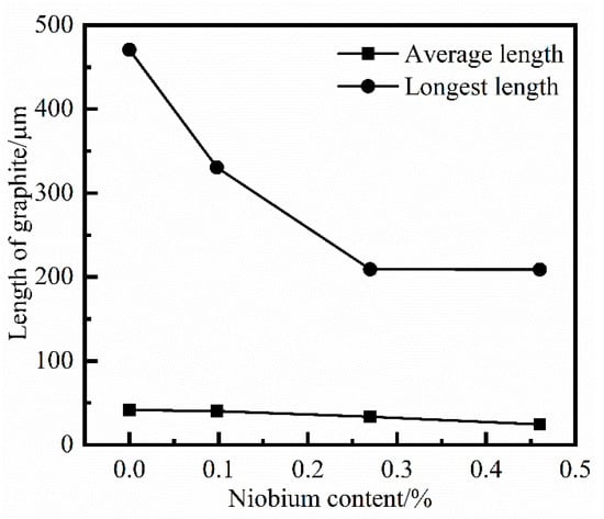 | Number | C | Si | Mn | P | S | Nb | Longest Graphite (μm) | Average Graphite (μm) | Pearlite Interlamellar Spacing (μm) | Strength (Mpa) |