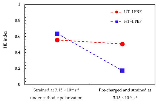 Hydrogen embrittlement index for the LPBF specimens after SSRT tests.