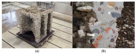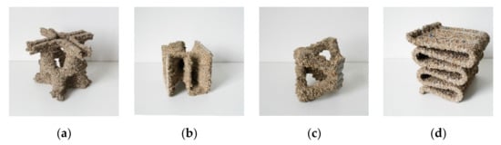 After 24 h, the final demonstrator is exposed with the help of small shovels. The unbound aggregates are removed and can be reused for the manufacturing of another object (Figure 16a).