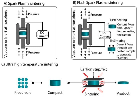 - Cavaliere, P.; Sadeghi, B.; Shabani, A. Spark Plasma Sintering: Process Fundamentals. In Spark Plasma Sintering of Materials: Advances in Processing and Applications; Cavaliere, P., Ed.; Springer: Cham, Switzerland, 2019; pp. 3–20. [Google Scholar] [CrossRef]