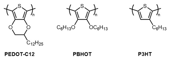 - Sun, K.; Zhang, S.; Li, P.; Xia, Y.; Zhang, X.; Du, D.; Isikgor, F.H.; Ouyang, J. Review on application of PEDOTs and PEDOT:PSS in energy conversion and storage devices. J. Mater. Sci. Mater. Electron. 2015, 26, 4438–4462. [Google Scholar] [CrossRef]