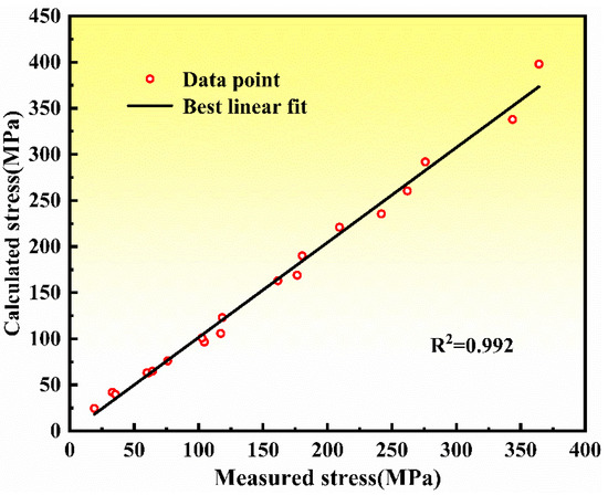 The fitting curve between the experimental peak of the stress and the calculated one is plotted in Figure 8. The linear regression correlation coefficient R2 is 0.992, which indicates the high accuracy of the constitutive relationship of the casting NiTi alloy.