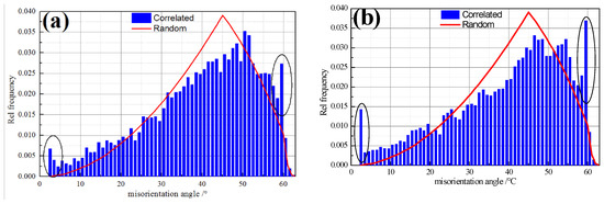 Misorientation distributions of different C content: (a) ELC; (b) LC.