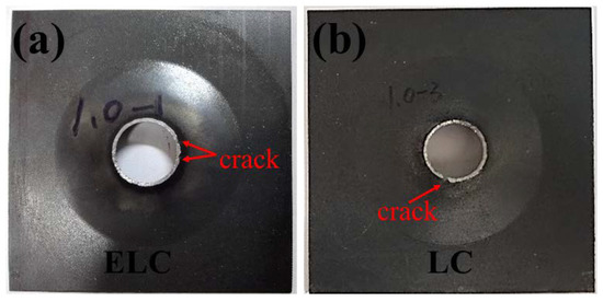 Photograph after hole expanded with different C content: (a) ELC; (b) LC.
