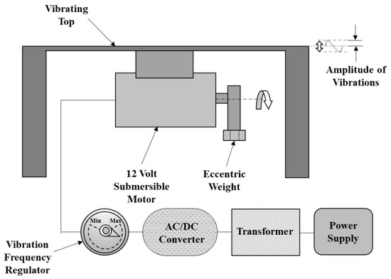 This setup was then calibrated using an accelerometer (general purpose (780988-01) 10 mV/g, ICP® (IEPE), made by National Instruments, Austin, TX, USA). The work piece was held on a magnetic vice and an accelerometer was placed on the work piece. The vibration frequency was measured for a few rotations of the potentiometer shaft. A data acquisition system (National Instruments 9234 Module, manufactured by NI, Austin, TX, USA) was used to record the readings of the accelerometer in LabVIEW software (National Instruments, Austin, TX, USA). For an angular position of the potentiometer shaft, three measurements were taken and the average of the data was marked on the potentiometer for the specific position of its shaft. The same exercise was repeated for ten positions of the shaft. Hence, the potentiometer was able to select the vibration frequencies among ten available choices. The vibrating platform vibrated at frequencies ranging from 0 Hz to 100 Hz.
