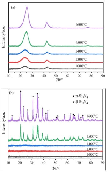 - Li, J.; Luo, F.; Zhu, D.; Zhou, W. Influence of Phase Formation on Dielectric Properties of Si3N4 Ceramics. J. Am. Ceram. Soc. 2007, 90, 1950–1952. [Google Scholar] [CrossRef]