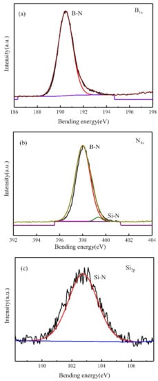 - Al-Ghalith, J.; Dasmahapatra, A.; Kroll, P.; Meletis, E.; Dumitricǎ, T. Compositional and Structural Atomistic Study of Amorphous Si-B-N Networks of Interest for High-Performance Coatings. J. Phys. Chem. C 2016, 120, 24346–24353. [Google Scholar] [CrossRef]